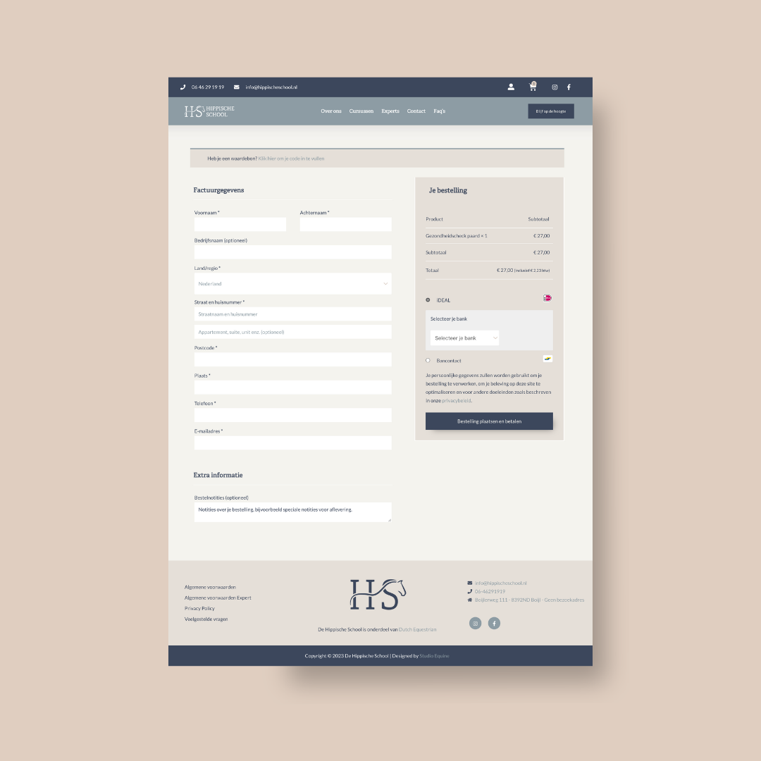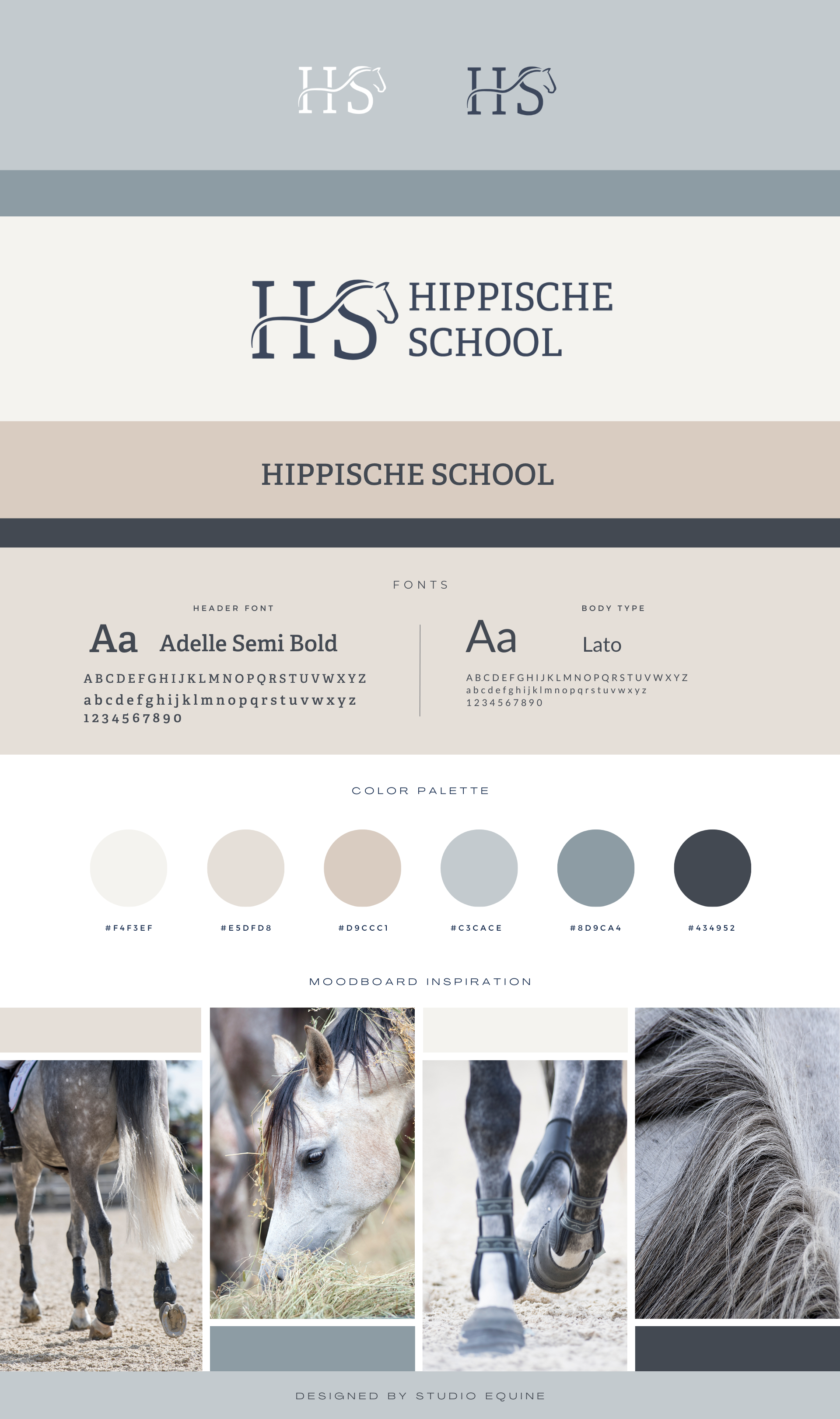 Het logo voor de Hippische School was al ontworpen. Wel heb ik een Brand Board gemaakt met de kleuren voor de huisstijl en als basis voor de website.