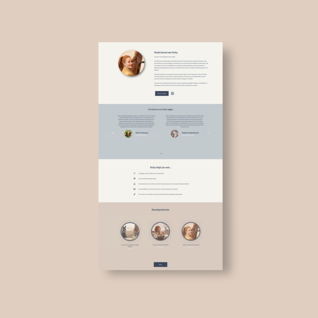De website inclusief de kennisshop heb ik ontworpen en ingericht. Als bezoeker kun je op twee manieren ‘zoeken’. In het overzicht van de experts zie je alle aangesloten experts met een eigen profielpagina. Hierop staat meer informatie over de expert en welke cursussen of producten deze aanbiedt. Ook kun je via de cursuspagina zien welke cursussen er allemaal aangeboden worden en filteren op onderwerpen als bijvoorbeeld ‘gezondheid’, ‘training’, of ‘marketing’.